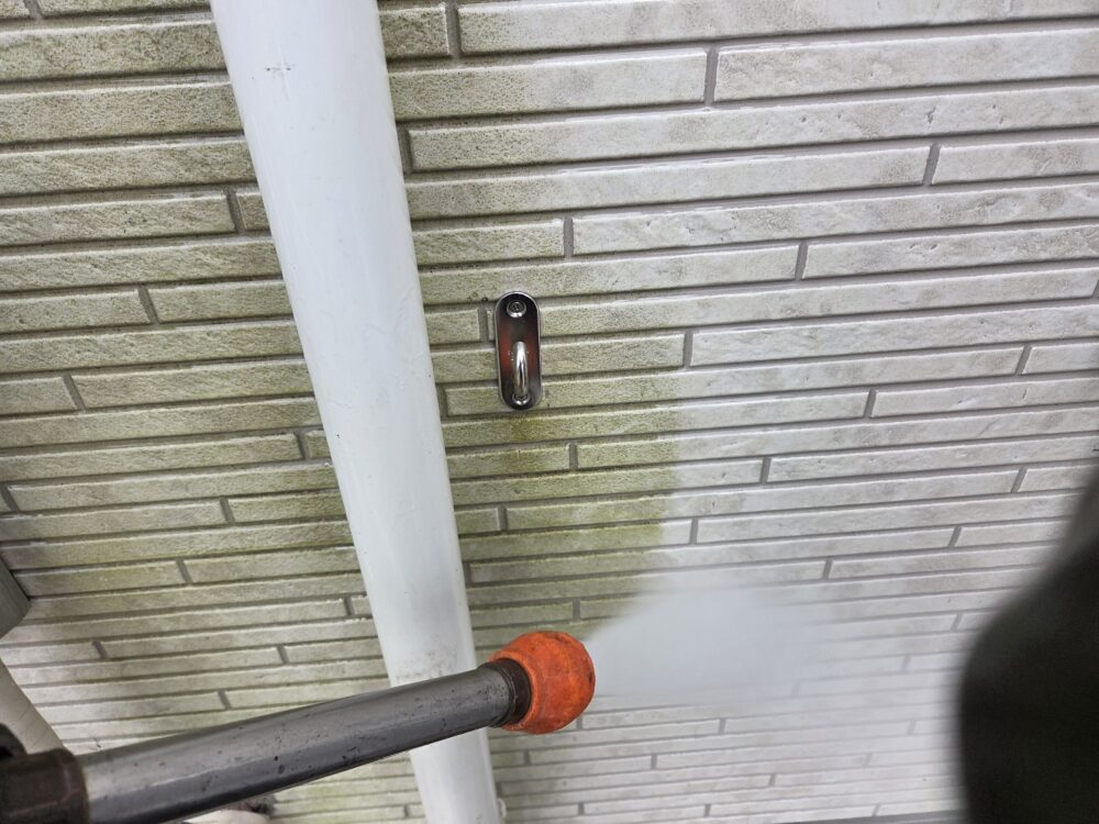 サイディング外壁の洗浄では、表面に付着した汚れを丁寧に洗い流していきます。